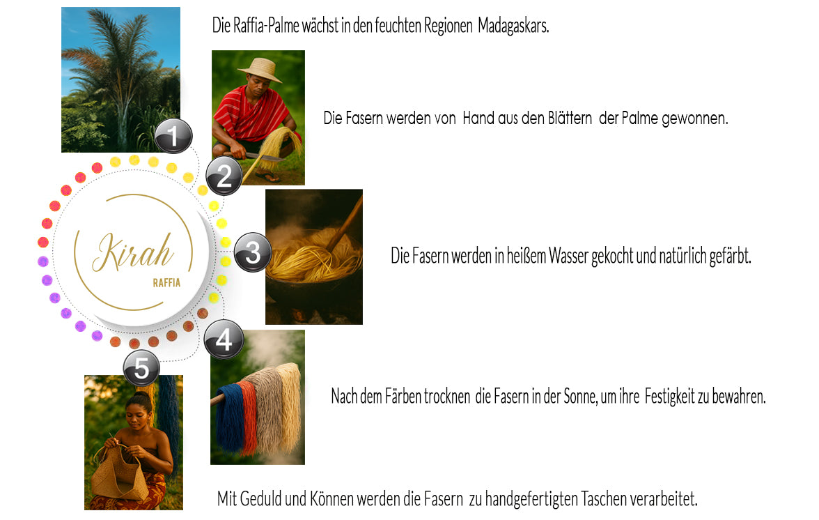 Jede Tasche erzählt eine Geschichte – inspiriert von der Sonne Madagaskars und gefertigt mit Hingabe.